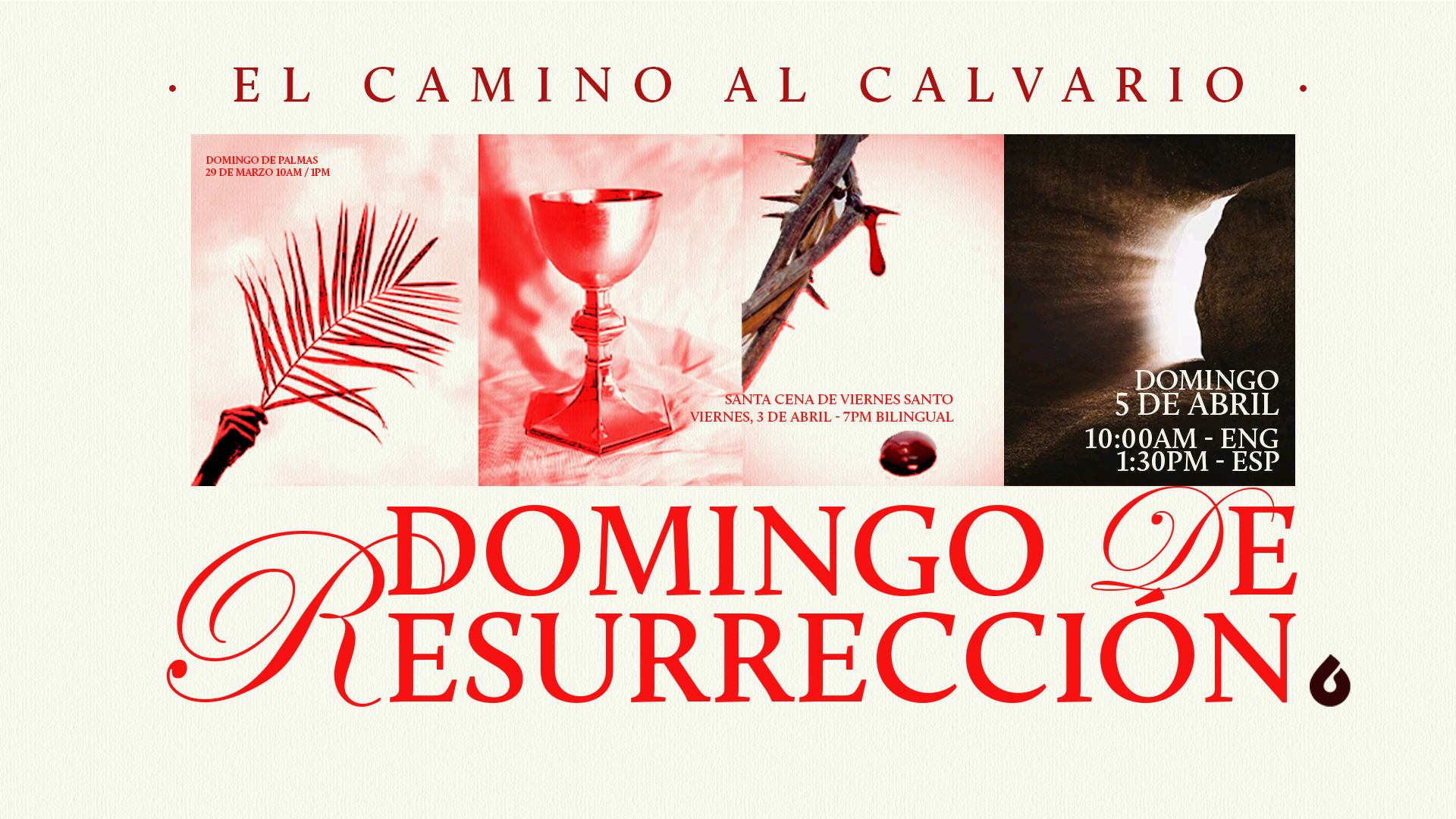 Nuestro servicio de Pascua incluirá una alabanza alentadora y un mensaje inspirador sobre la esperanza que tenemos en Jesús. No importa en qué etapa de tu vida te encuentres, ¡nos encantaría que nos acompañaras!